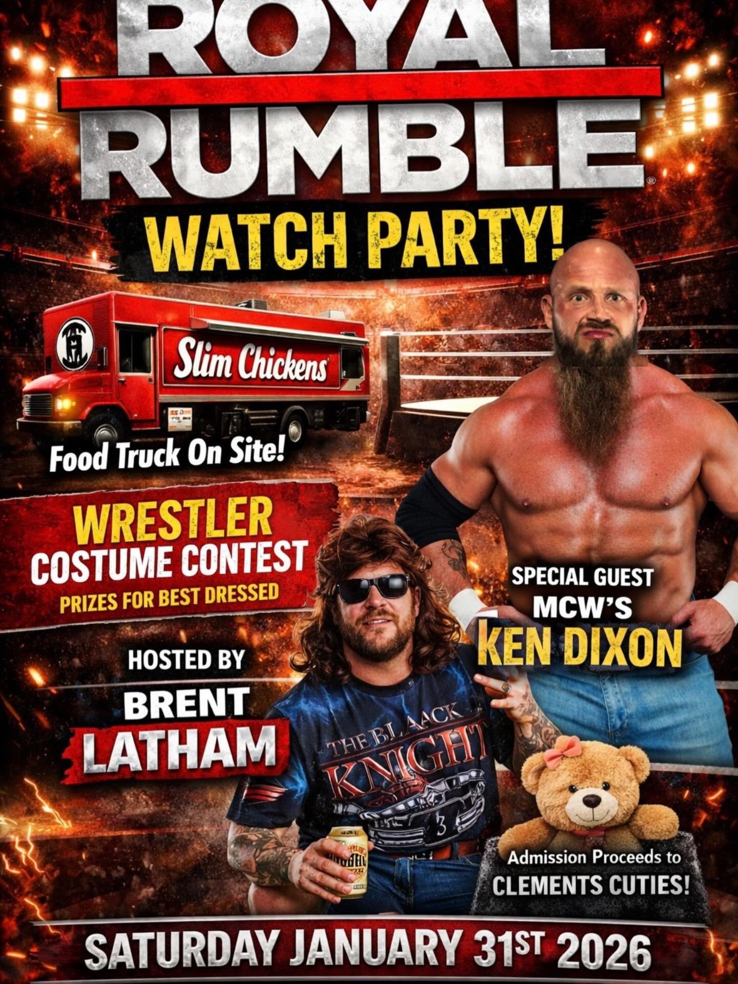 Get ready for the most unpredictable night in wrestling! Join us at the historic Rex Theatre for an epic Royal Rumble 2026 Watch Party packed with action, food, and fun—all for a great cause.