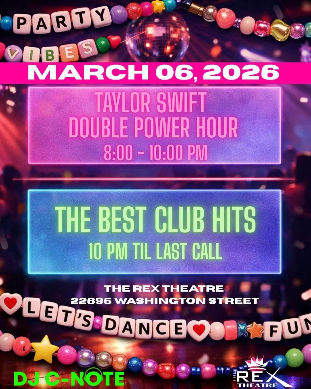 DJ C Note is hitting the Swifties with a DOUBLE Power Hour from 8:00-10:00 PM! Club hits to follow