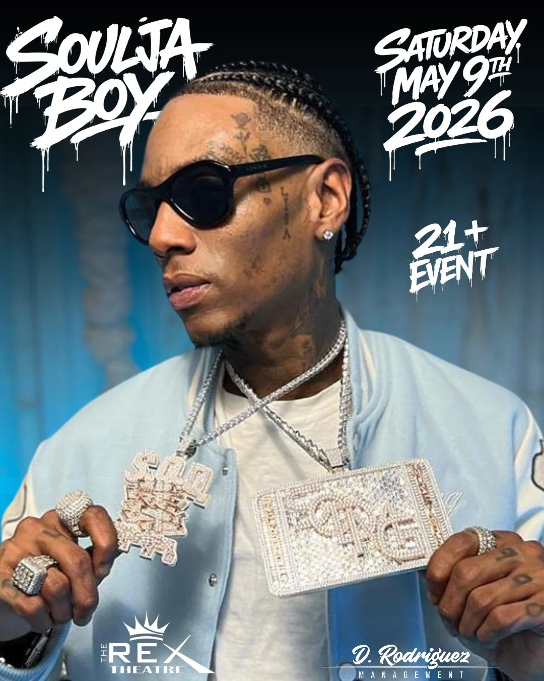 Soulja Boy is bringing the party to The Rex Theatre for one massive night of hip-hop. Known for viral hits like Crank That (Soulja Boy) and Turn My Swag On, the platinum-selling artist will perform the songs that defined a generation.